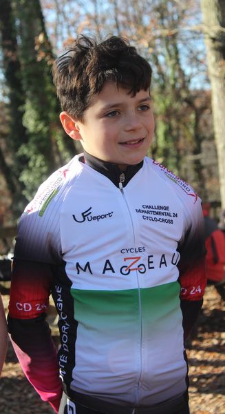 La lutte sportive et amicale des U11, est passée par la victoire du jour pour Léandre JABLONSKI (Dordogne Sud), qui n’a pu remonter Alexy ESTEVE (CC Périgueux) au classement du maillot qu’il remporte cette saison de cyclo cross. Simon BUTTIGIEN, Timéo DO NASCIMENTO CORREIA et Zacchary BLEUZE tous trois de VTT Evasion Pourpre les suivent.